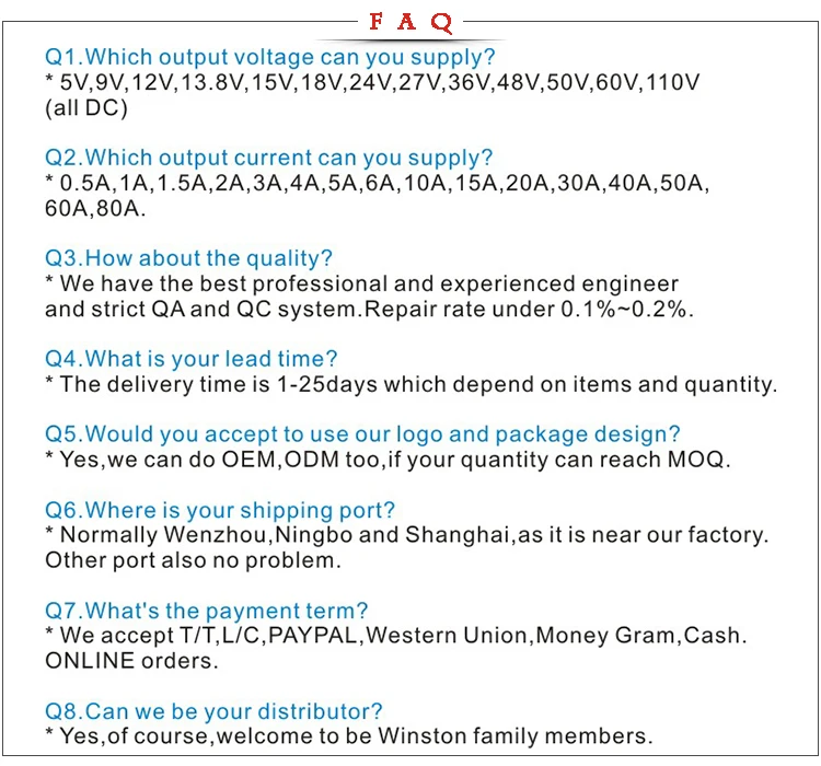 | 2. Ripple & noise are measured at 20MHz of bandwidth by using a 12" twisted pair-wire terminated with a 0.1uf & 47uf parallel capacitor. | ||||||