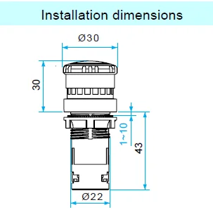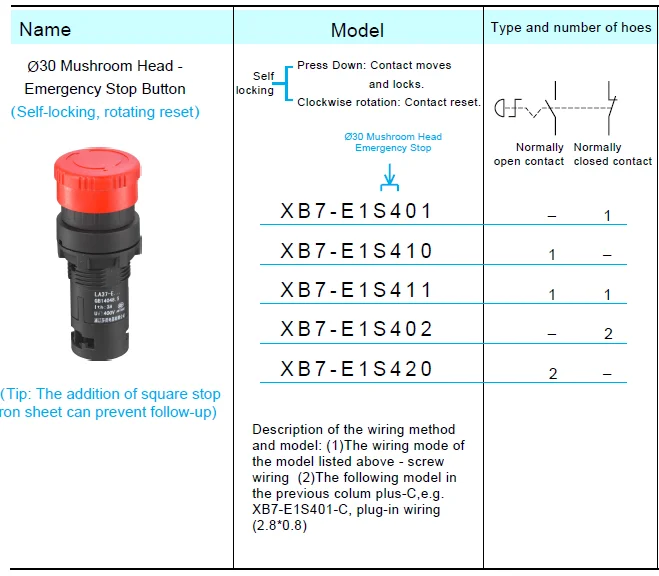 Mechanical life | Spring-loadd button: 5 million times Knob switch: 1 million times Emergency stop button: 300,000 times |