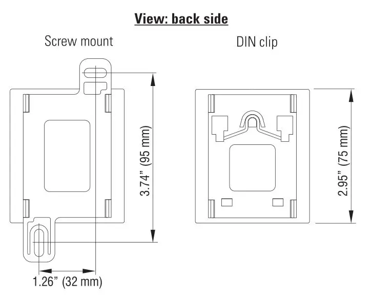 | Mounting | screw mount or clip for 35 mm DIN rail, EN 60715 |