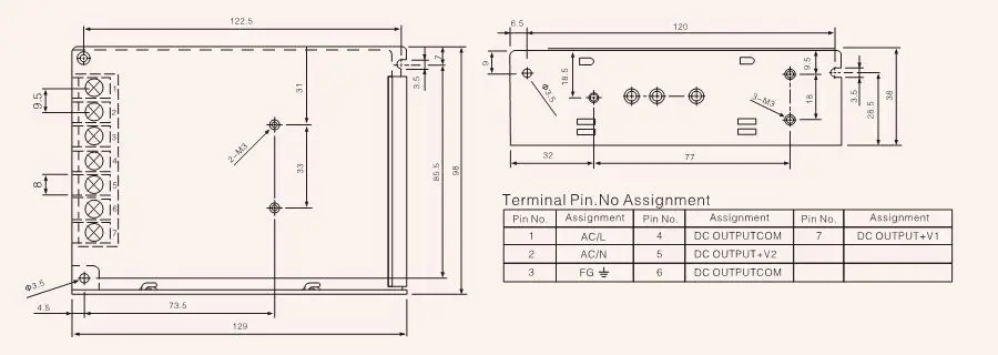 2) AC Input Range:90-132VAC/180-264VAC by switch 254-370 VDC
