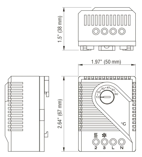 The thermostat registers the surrounding air and can switch both inductive and resistive loads