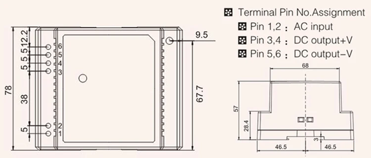 | 2. Ripple & noise are measured at 20MHz of bandwidth by using a 12" twisted pair-wire terminated with a 0.1uf & 47uf parallel capacitor. | |||||