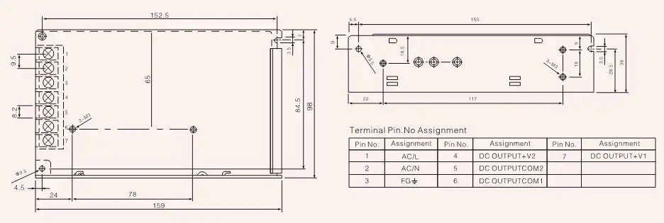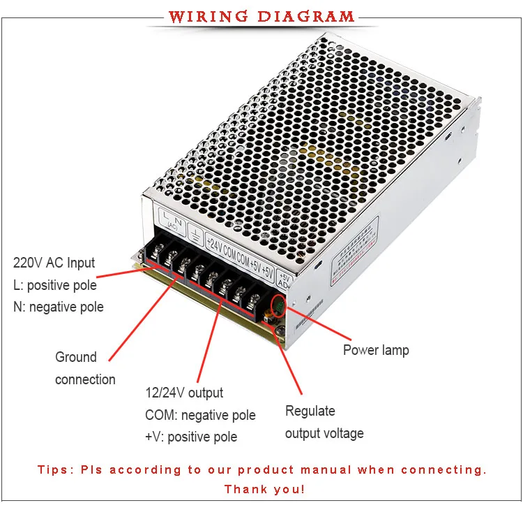 2) AC Input Range:90-132VAC/180-264VAC by switch 254-370 VDC