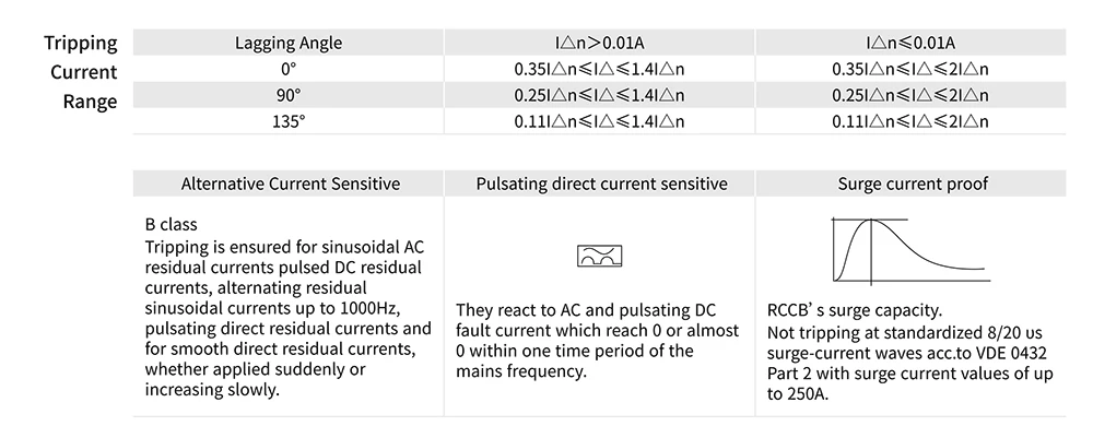 | Rated residual operation current(I△n) | 30, 100, 300mA |