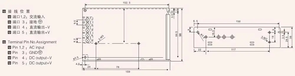 | DC output voltage | 5V | 12V | 15V | 24V |