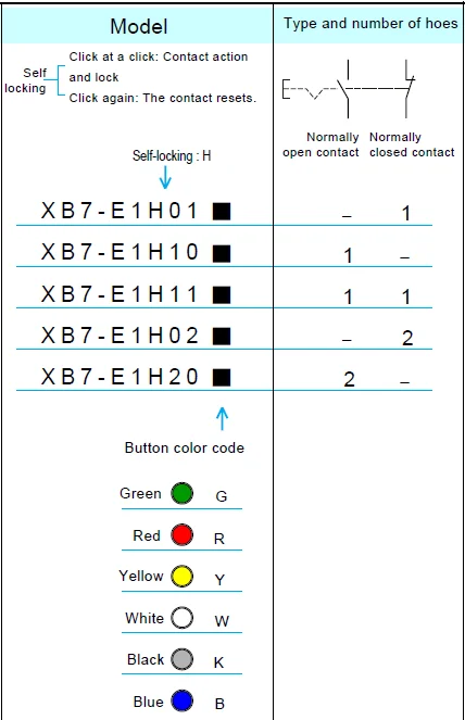 (2)The following model in the previous colum plus-C,e.g. XB7-E1A10G-C, plug-in wiring(2.8*0.8)