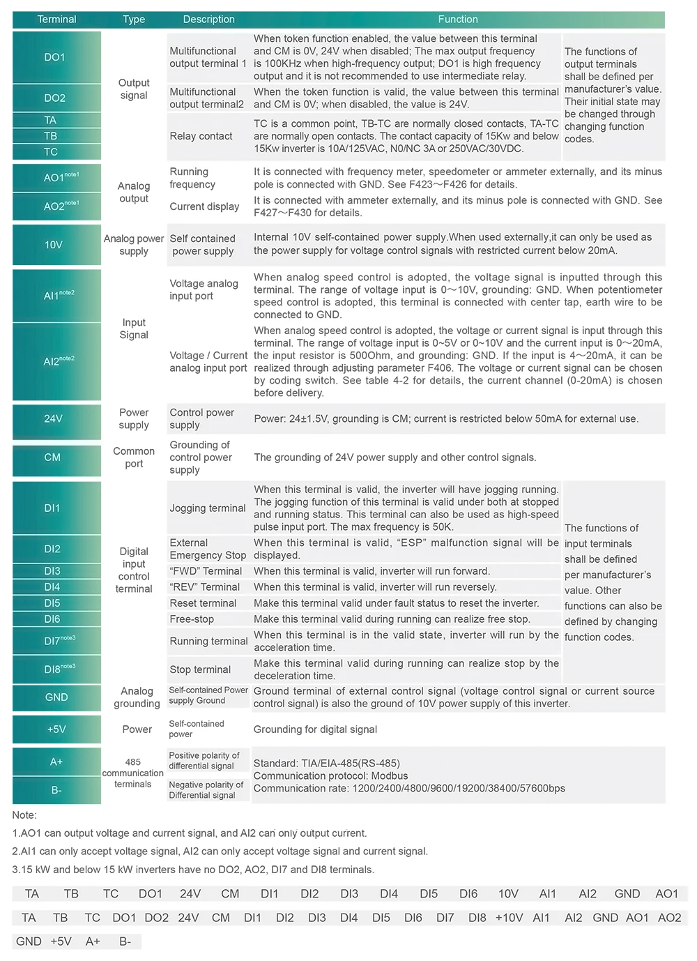 | Running Command Channels | 3 kinds of channels from keypad panel, control terminal and MODBus. | |