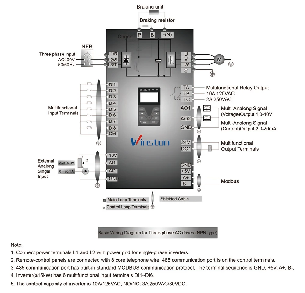| Start/Stop Control | Terminal control, keypad control or communication control. | |