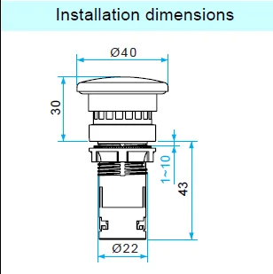 Note: The button can also be installed in the aperture of 25 mounting hole, after the addition of variable diameter ring can be installed in the aperture of the installation hole of 30.