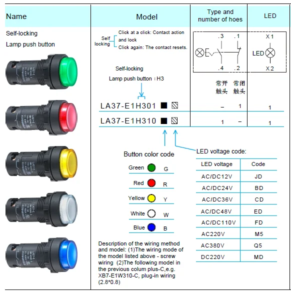 (2)The following model in the previous colum plus-C,e.g. XB7-E1W310G-C, plug-in wiring(2.8*0.8)